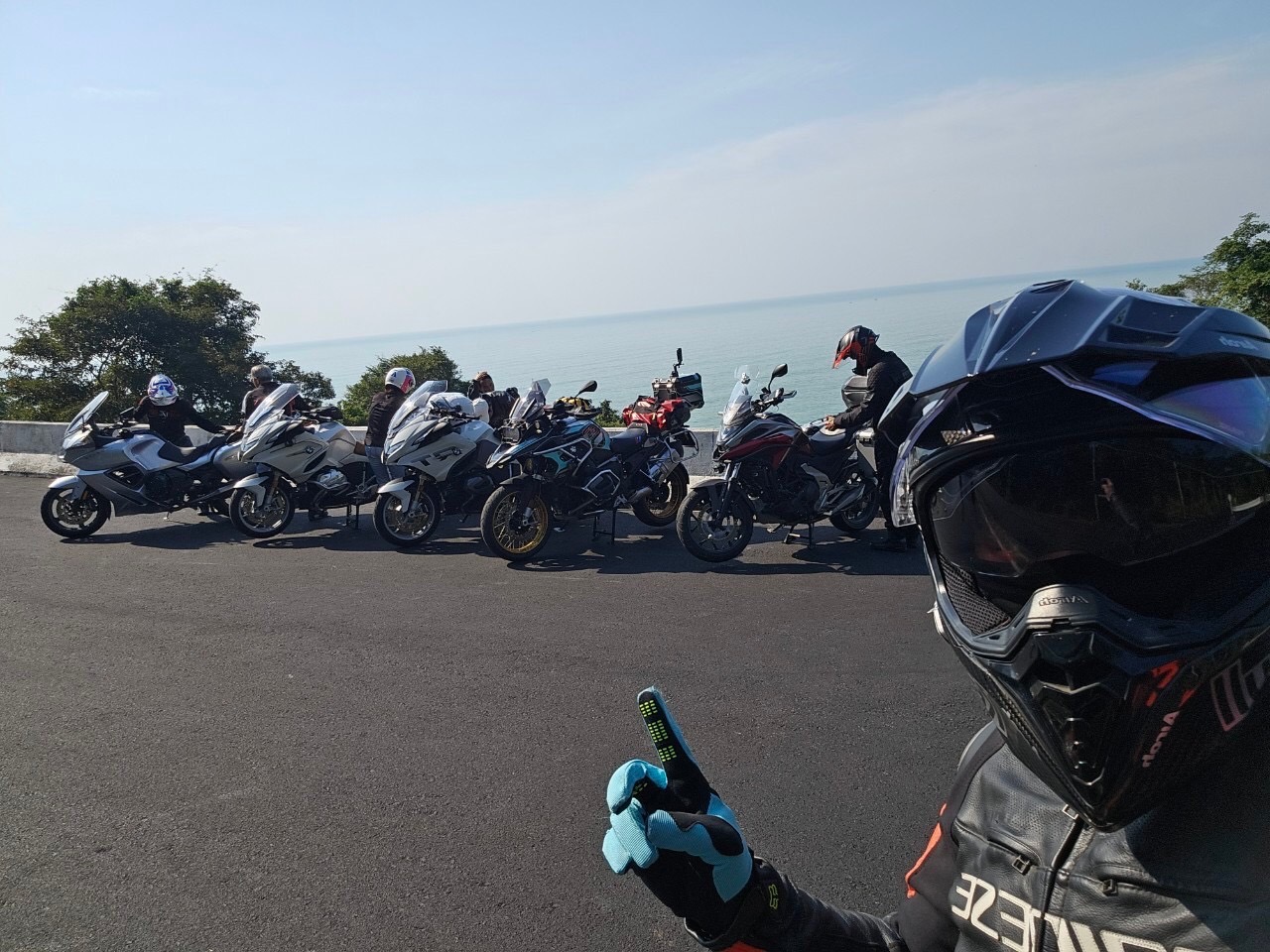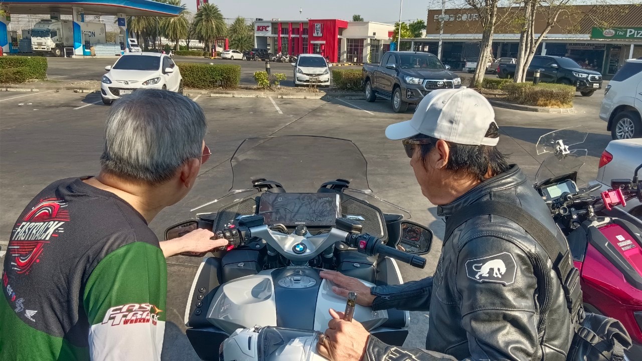 ถึงปั๊มปตท. วังมะนาว รอจนทุกคนมารวมตัวกันเรียบร้อย ก่อนออกสตาร์ทมุ่งสู่ อำเภอขนอม จังหวัดนครศรีธรรมราชจุดหมายของเราในวันแรก พี่จู๊ด หรือที่ผมเรียกแกเล่น ๆ จนติดปากว่าผู้กำกับ ที่มีทั้ง R 1250 RT และ R 1300 GS ก็เดินเข้ามาแนะนำระบบ พร้อมฟังก์ชั่นการใช้งานต่าง ๆ ที่ต้องบอกว่า R 1250 RT มีครบ ถึงครบมาก ไม่ว่าจะเป็นโช้คปรับไฟฟ้า Dynamic ESA ระบบความปลอดภัย Dynamic Traction Control DTC, ABS Pro, Hill Start Control Pro และ Dynamic Brake Assistant DBC ที่สำคัญคือมี Adaptive Cruise control ซึ่งเป็นระบบควบคุมความเร็วแบบรักษาระยะห่างอัตโนมัติด้วย เรียกว่ามีอะไรให้ลองเล่นเยอะเลยระหว่างทาง
