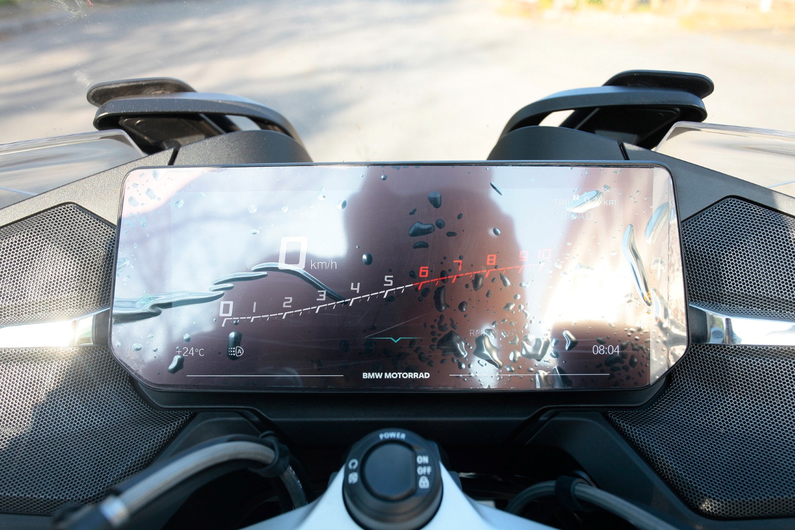 สตาร์ทเครื่องอยู่กับที่เตรียมออกเดินทาง จากโหมด Road ปรับเป็น Dynamic รอบเครื่องเดินเบาแถว ๆ 1,600 รอบ/นาที ก็กระเถิบสูงขึ้นเป็น 1,700-1,750 รอบ ในทันที ระบบกันสะเทือนเองก็มีการปรับตัวตามโหมดที่เลือกให้อัตโนมัติจนรู้สึกว่าโช้คนั้นเฟิร์มขึ้นอย่างชัดเจน อย่างหนึ่งที่ชอบในตัวของโช้คปรับไฟฟ้า Dynamic ESA ของรุ่นนี้ซึ่งเป็น Next Generation แล้วคือ มันลดความซับซ้อนในการปรับตั้ง แค่ปรับโหมดขับขี่ โช้คก็จะปรับความหนืดตามให้โดยสอดคล้องกับโหมดขับขี่ที่เลือก และสภาวะการขับขี่อัตโนมัติ ยิ่งไปกว่านั้นมันเป็น load compensation คือเราไม่ต้องเข้าไปเซ็ตว่าขี่คนเดียว ซ้อนสอง หรือมีสัมภาระด้วยอะไรแล้ว เขาจะปรับค่าให้เหมาะสมกับน้ำหนักที่บรรทุกให้เองโดยไม่ต้องเข้าไปเซ็ตอะไรเพิ่มเติมเลย