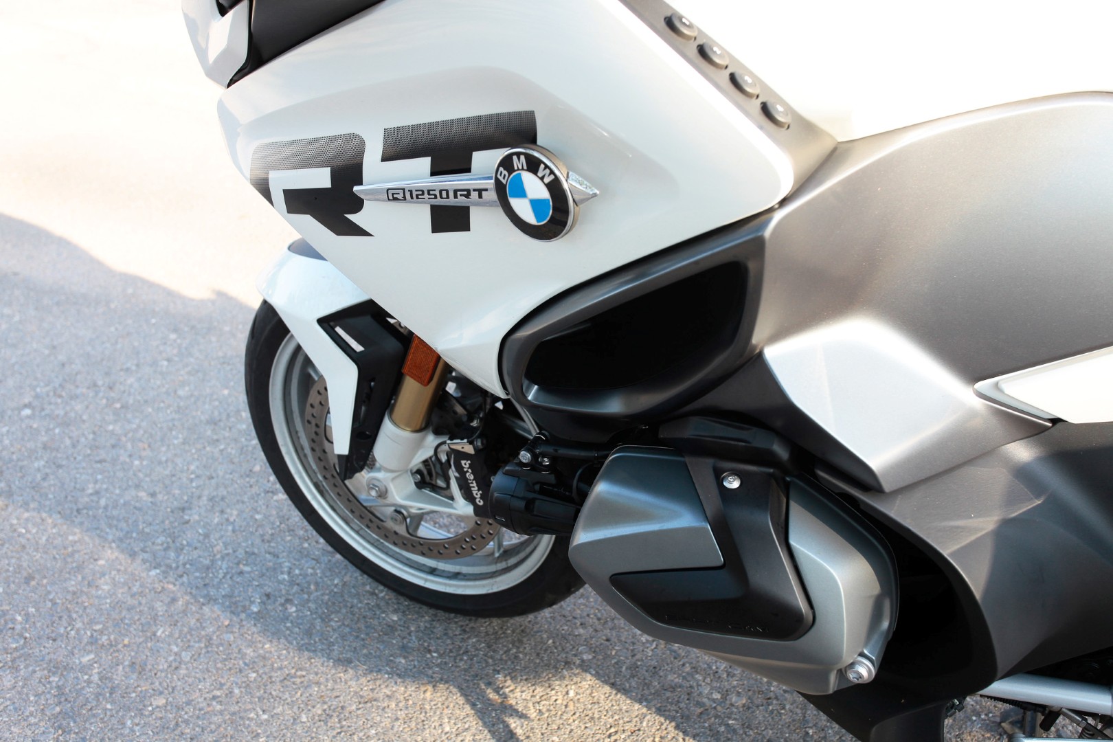 ชุดเคาริ่งหน้าเพิ่มเหลี่ยมมุมรับกับโคมหน้า LED ดูสปอร์ต ครอบคลุมมาถึงถังน้ำมันขนาดใหญ่ความจุ 25 ลิตร บังลมด้วยชิลด์หน้าปรับไฟฟ้าขนาดใหญ่ เรือนไมล์ TFT ขนาด 10.25 นิ้ว โอ่อ่าเต็มตาเหมือนถอดมาจากรถยนต์ ขนาบข้างด้วยลำโพงซ้าย-ขวา พร้อมปุ่ม Favorite ที่เป็นคีย์ลัดซึ่งเราสามารถตั้งและกดเพื่อใช้งานฟังก์ชั่นที่ใช้ประจำได้อย่างรวดเร็วทางฝั่งซ้าย เชื่อมต่อด้านท้ายที่แจกแจงน้ำหนักไว้ 45% ด้วยเบาะคนขี่โอบคอดและมีความกระชับ เอาเท้าลงแตะพื้นง่าย ยาวไปจนถึงเบาะคนซ้อนขนาดใหญ่นุ่มนิ่มนั่งสบาย ด้านล่างเป็นสวิงอาร์มแขนเดี่ยวพร้อมระบบขับเคลื่อนด้วยเพลา ขณะที่โช้คหลังเป็น Paralever ช่วงยุบ 136 มม. ทั้งหมดขับให้ R 1250 RT ที่มีโครงสร้างดูใหญ่โตในสายตาคนทั่วไป มีความกระชับ เพรียวและรู้สึกนั่งสบายเกินคาดเมื่อลองคร่อมดูจริง ๆ
