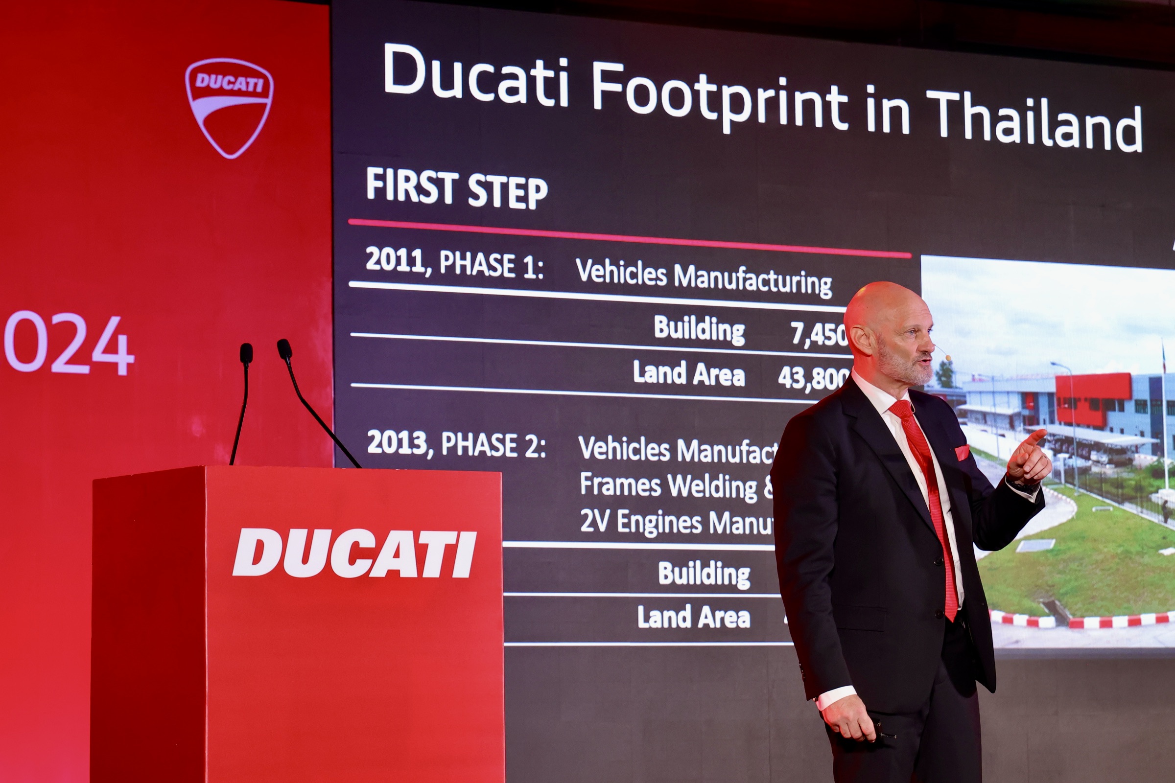 ด้าน มร.อัลเบอร์โต สตราดา (Alberto Strada) กรรมการผู้จัดการ ดูคาติ มอเตอร์ ประเทศไทย กล่าวว่า “หัวใจสำคัญของดูคาติคือคุณค่าอันโดดเด่นที่ผลิดอกเป็นมอเตอร์ไซค์ดีไซน์สะดุดตาและสไตล์สปอร์ตอันเป็นเอกลักษณ์มาโดยตลอด โรงงานแห่งใหม่นี้จะยกระดับ ดูคาติ มอเตอร์ ประเทศไทย ไปอีกขั้น ตั้งแต่โรงงานที่ก่อตั้งขึ้นในปี 2010 ซึ่งเป็นผู้นำด้านการผลิตมอเตอร์ไซค์ชั้นแนวหน้า จวบจนในวันนี้ที่เราได้ก้าวต่อไปอีกขั้น นอกจากเป็นฐานการผลิตแล้ว โรงงานแห่งใหม่นี้ยังเป็นที่ตั้งของฝ่ายขาย ฝ่ายการตลาด และฝ่ายบริการหลังการขาย เสริมความแข็งแกร่งให้กับแบรนด์ดูคาติทั่วทั้งภูมิภาคอีกด้วย”