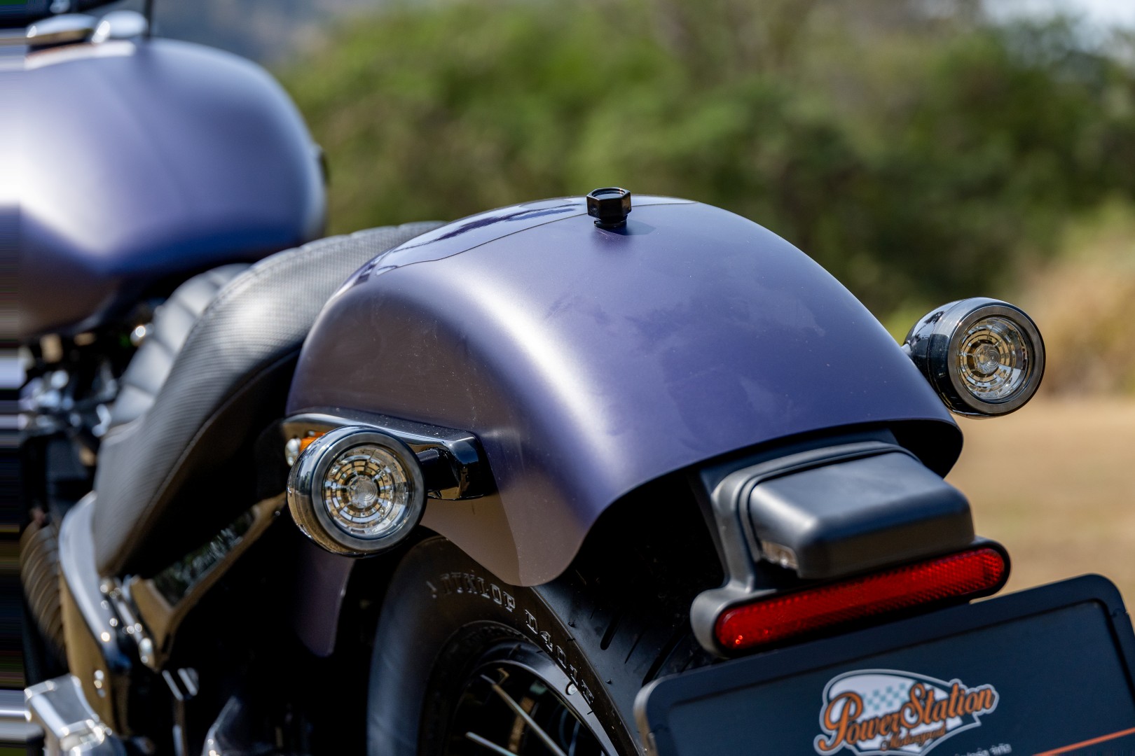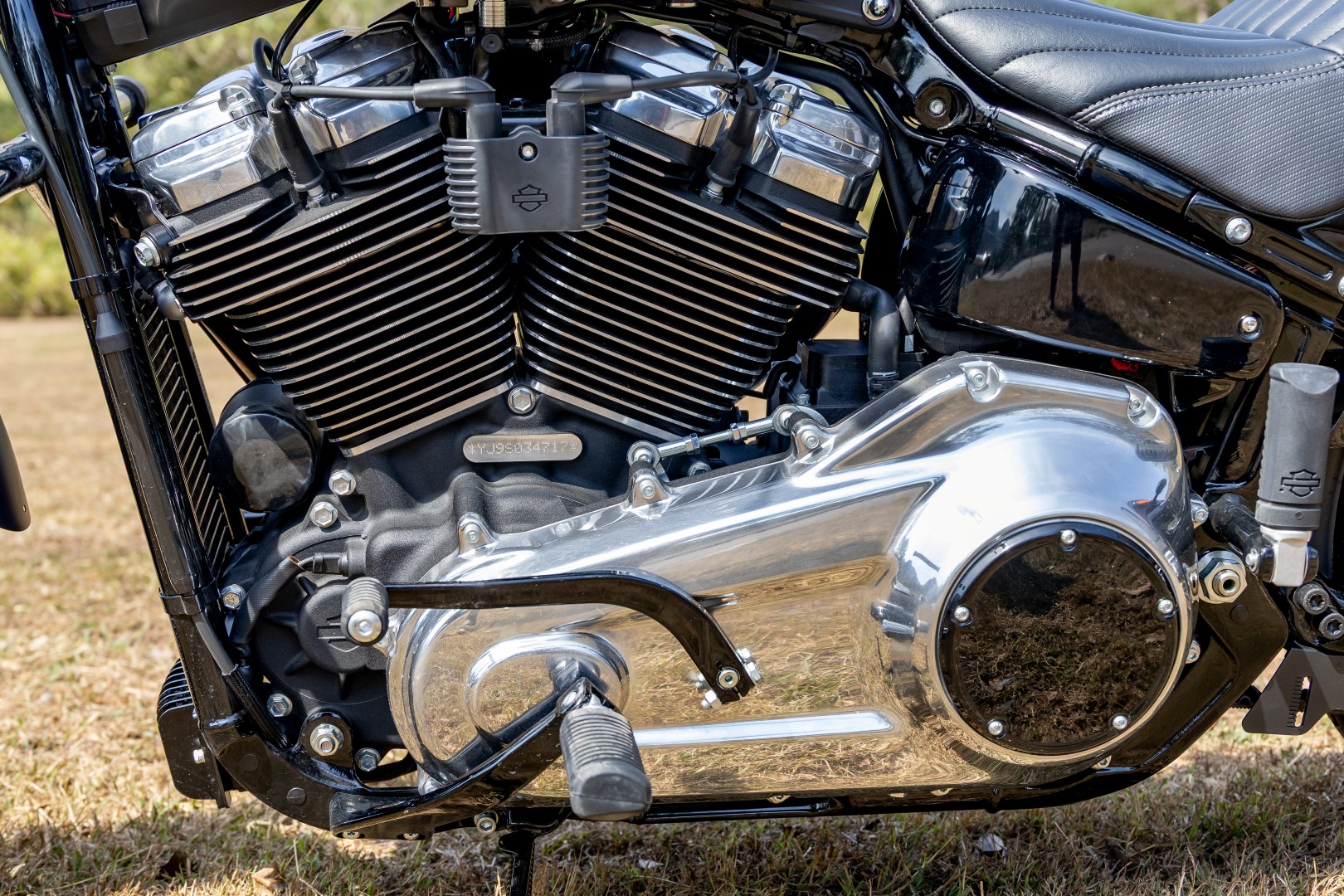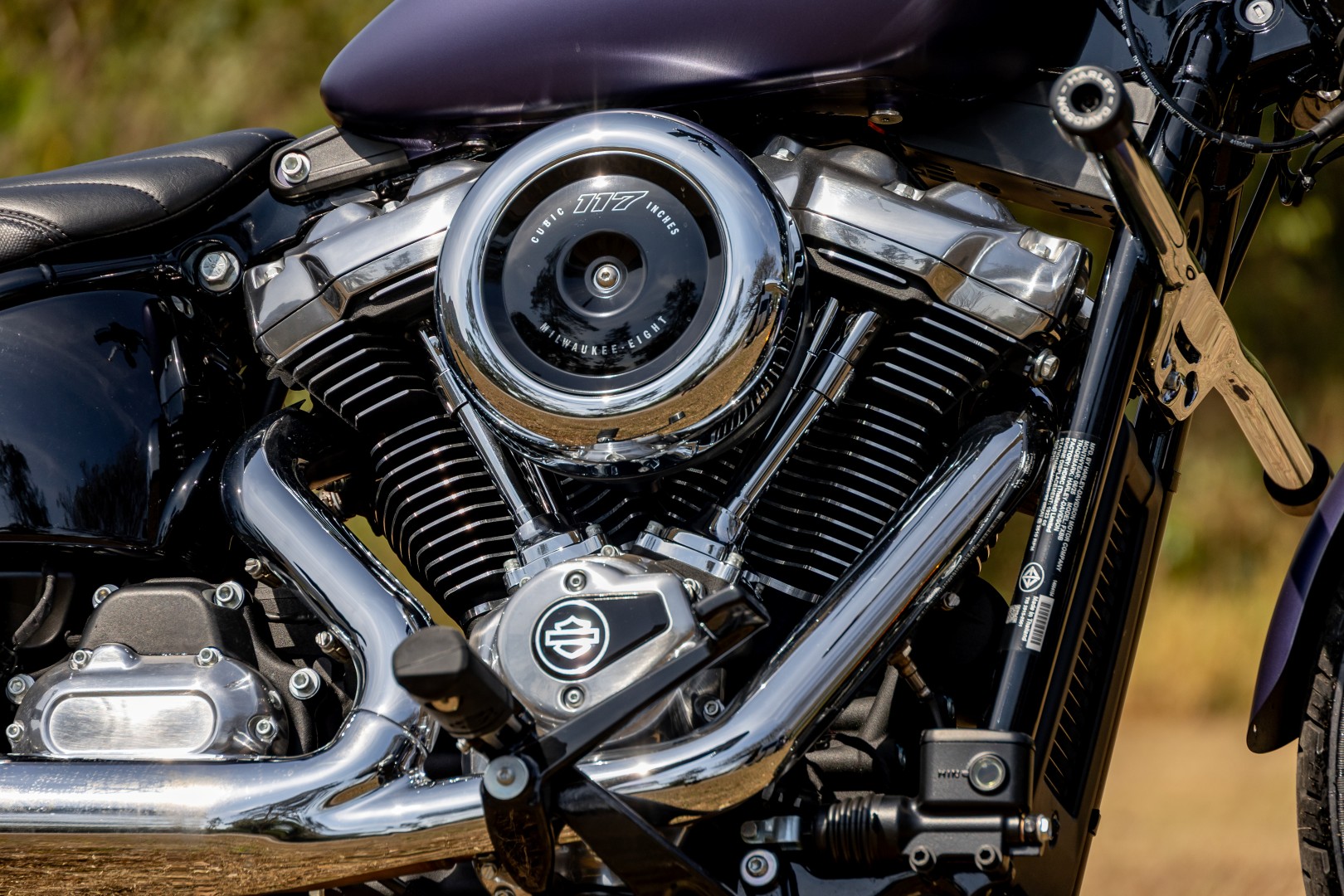 พอเป็นบ๊อบเบอร์ ตัวรถเลยดูบาง และเพรียว ยิ่งถอดเบาะหลังที่ยึดไว้ด้วยน็อตตัวใหญ่หัว-ท้ายออก เหลือแต่เบาะเดี่ยว ท้ายรถจะยิ่งดูสั้นแบบช็อปเปอร์ บอกเลยว่าโคตรเท่ห์ ที่เด่นอยู่ตรงกลางคือเครื่องยนต์ Milwaukee-Eight 117 Classic บล็อกใหญ่เบิ้ม ที่แยกส่วน ชุดคลัตช์ ชุดเกียร์ ออกจากชุดเพาเวอร์เทรน เหนือขึ้นไปด้านบนเป็นถังน้ำมัน 13.2 ลิตร ขนาดกำลังพอเหมาะเข้ากับทรงของตัวรถ ระบบไฟเป็น LED รอบคัน ทั้งไฟหน้า ไฟท้าย และไฟเลี้ยว