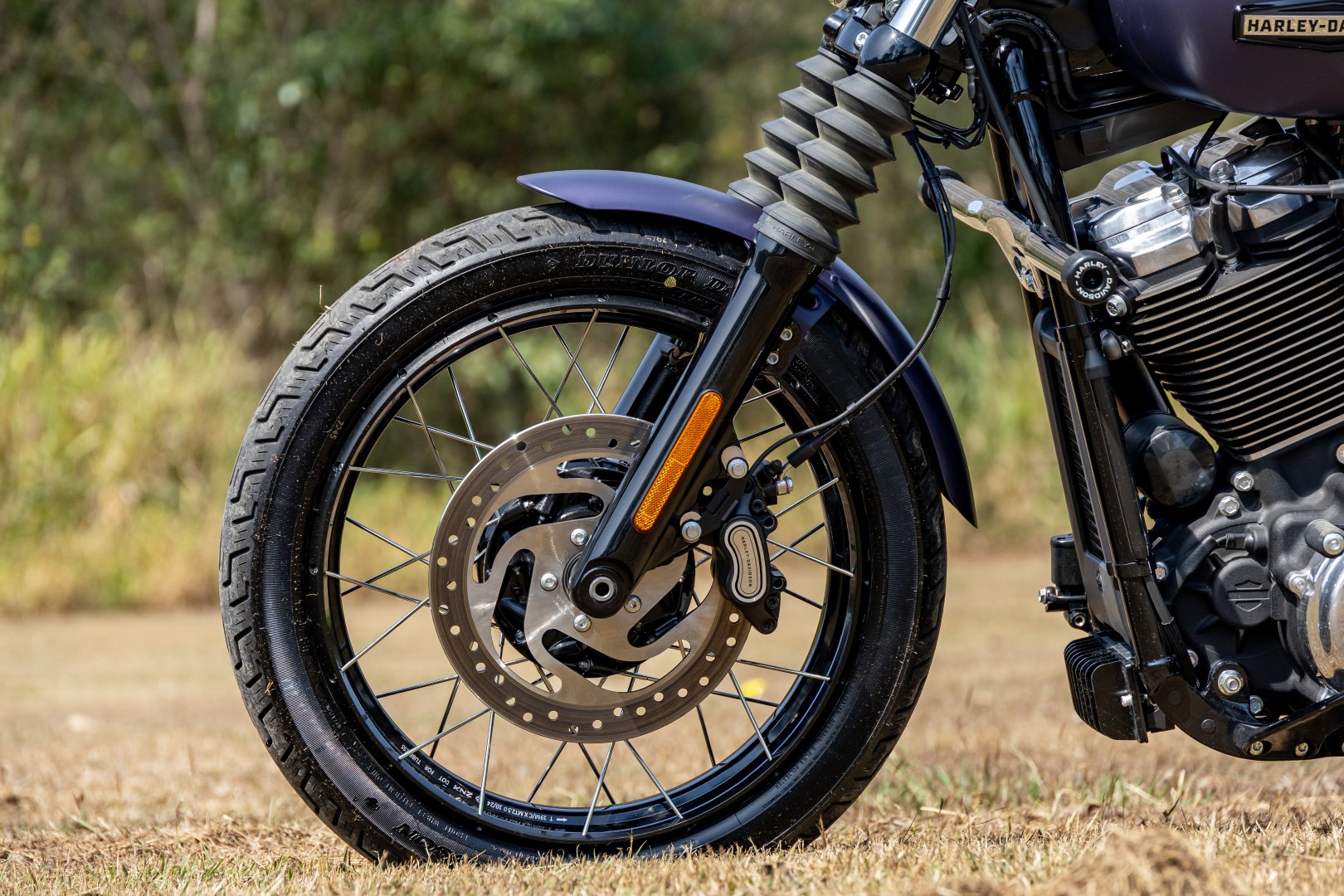 จุดนี้ส่งผลต่อประสิทธิภาพของระบบเบรกโดยตรง เพราะถ้าโช้คหน้า-หลัง แข็งเกินไป ไม่สามารถกระจายแรงสะเทือนได้ดี ภาระทั้งหมดก็จะไปตกอยู่ที่ยาง โช้คแข็งกดไม่ลงเบรกหน้าก็หยุดได้ไม่ดี แต่จากที่ลองมาผมว่าระบบกันสะเทือนของ Street Bob มีกลมกล่อมลงตัว โช้คหน้าถึงจะปรับค่าไม่ได้ แต่ก็มีการยุบและคืนตัวที่นุ่มนวลต่อเนื่อง