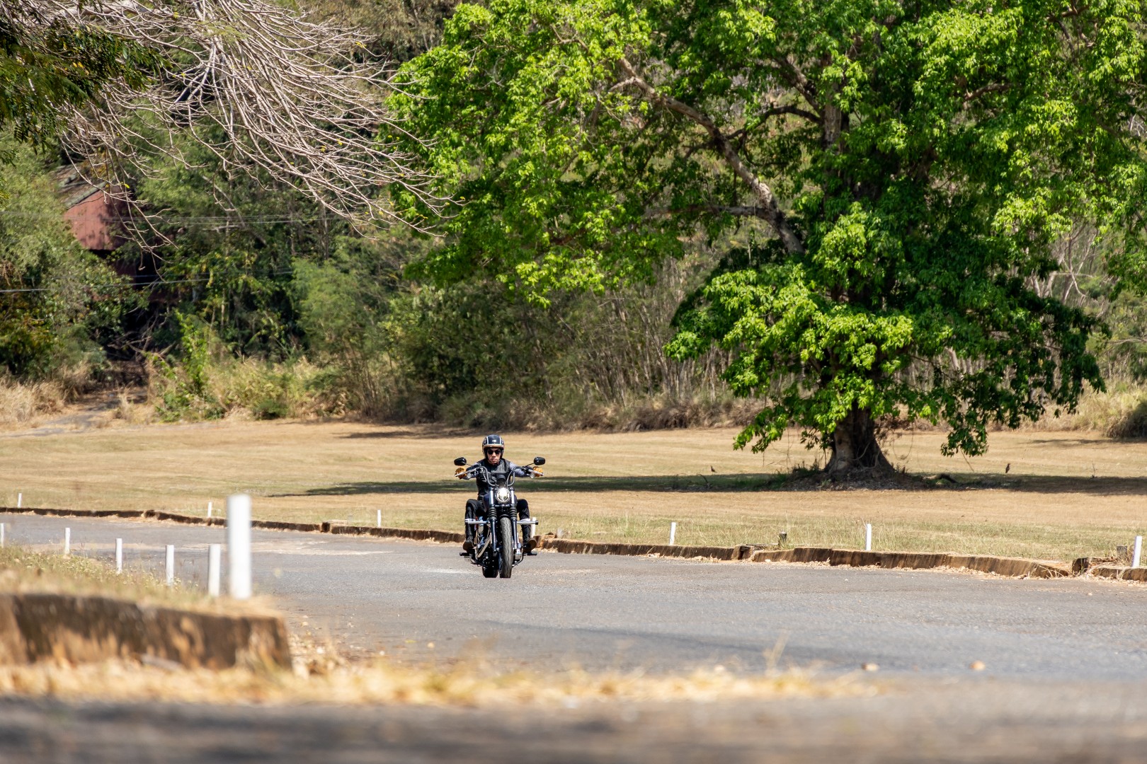 วาดขาขึ้นคร่อมเบาะสูงแค่ 655 มม. เตี้ยนั่งสบาย เอาเท้าลงแตะพื้นได้เต็มทั้งสองข้าง น้ำหนักตัวรถพร้อมขี่อยู่ที่ 293 กก. จัดว่าเบาคล่องตัว เมื่อเทียบกับตระกูลครุยเซอร์ด้วยกัน เป้าหมายในการทดสอบวันนี้คือเขาใหญ่ ไม่ใกล้ไม่ไกลจากกรุงเทพ แบบขี่ไปหา Café กินกาแฟ ค้างซักคืนแล้วก็กลับ