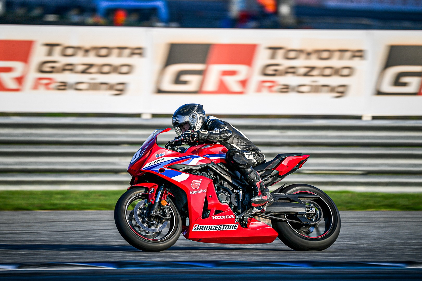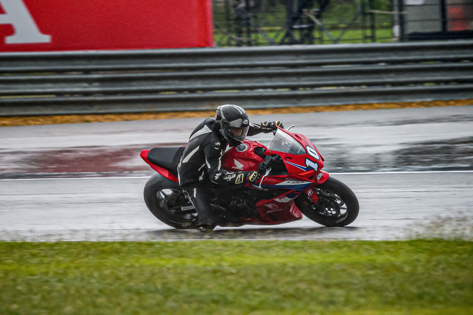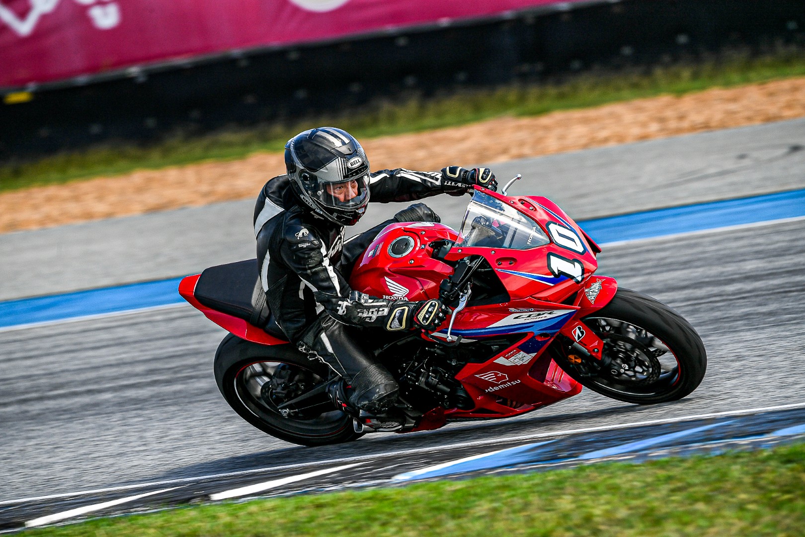 เป็นไปตามคาด CBR650R E-Clutch ของผมขึ้นนำไปคว้าโฮลช็อต พร้อมยืนระยะทะยานผ่าน Wet Race ในครั้งนั้นไปได้แบบไม่กดดัน แม้ชุดแข่งจะเปียกจนชุม ชิลด์หมวกจะเต็มไปด้วยหยดน้ำ แต่ก็ยังสามารถคว้าอันดับ 1 มาครองได้ด้วยเวลา 2.09 อ่อน ๆ พร้อมความเร็วเฉลี่ยที่ทำได้ 203.80 กม./ชม. ท่ามกลางสายฝน จบการแข่งด้วยความสนุก ปลอดภัย บน CBR650R E-Clutch ที่ช่วยให้คุมคันเร่งได้นุ่ม ๆ ในทุกเกียร์ที่เลือกใช้ โฟกัสได้เต็มที่กับไลน์การขี่ และยาง Racing Battlax W01 ที่รีดน้ำดีมาก เกาะกริป ไม่มีเหวอเลยสักครั้ง