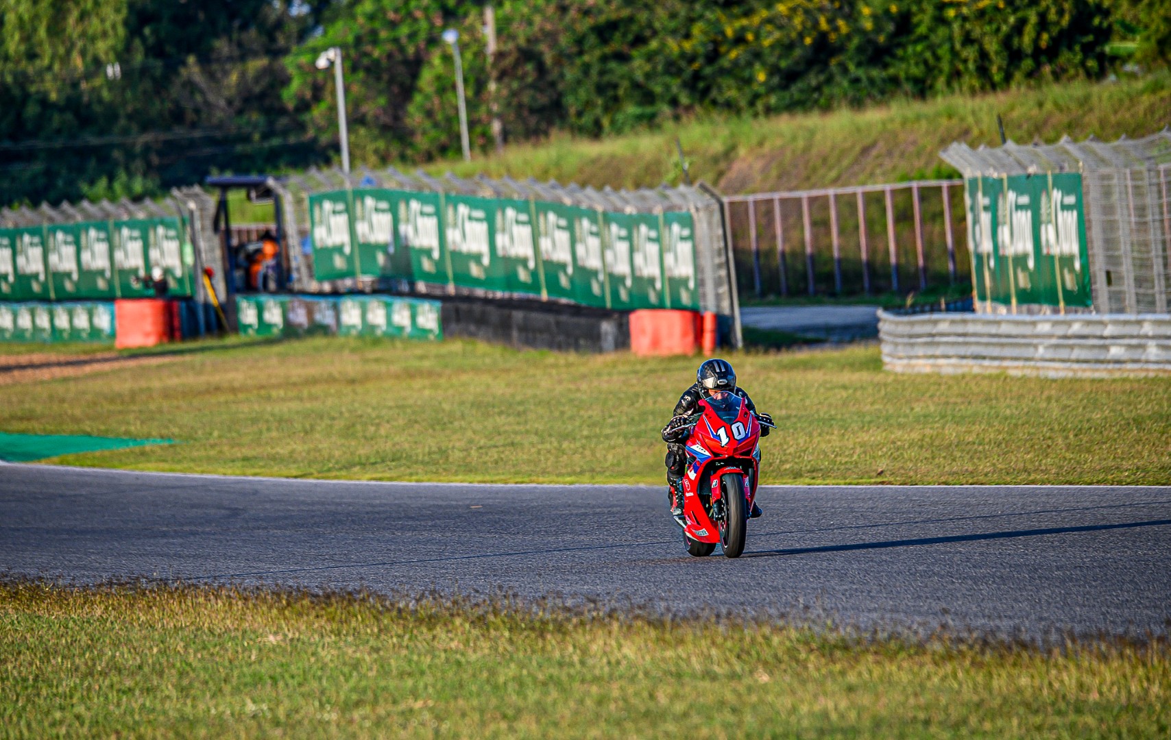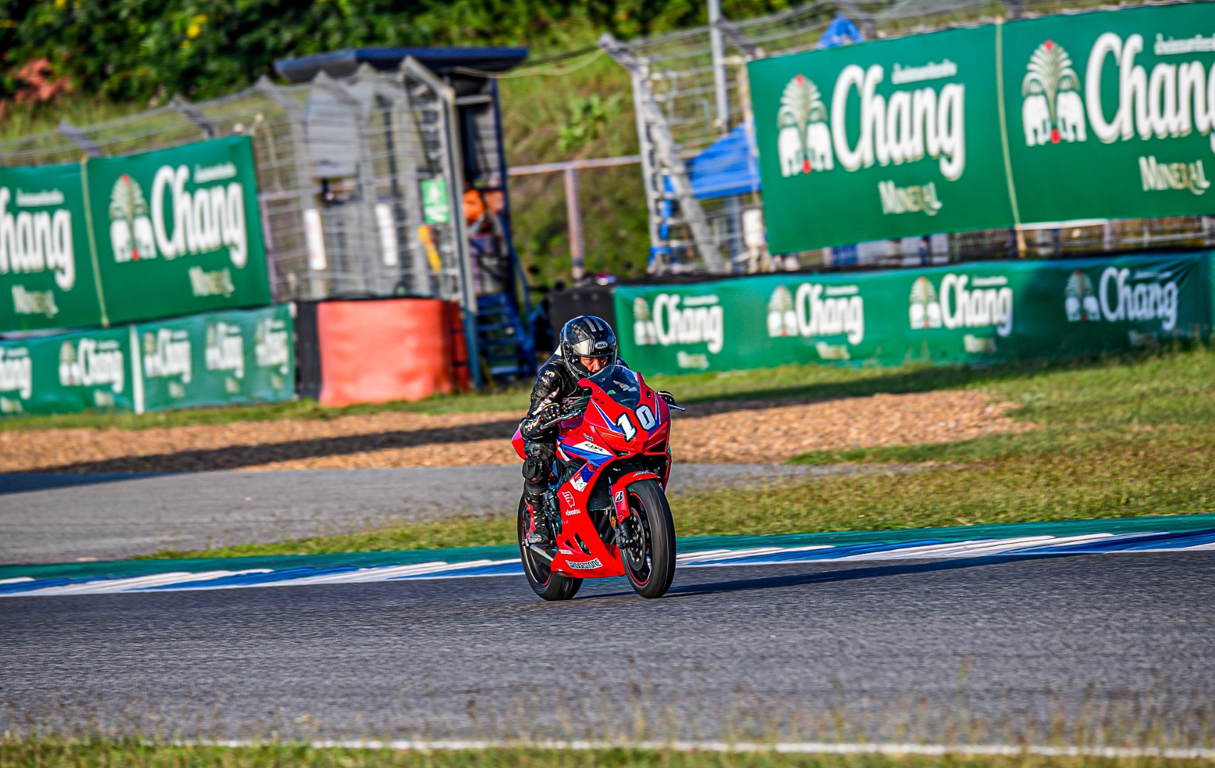 แม้จะไม่ได้ขี่ในสนามช้างมานานพอสมควร แต่ก็ยังโชคดีที่ก่อนหน้านี้มีโอกาสลงไปช่วยน้อง ๆ ในการแข่งขัน Endurance 1 ชั่วโมงครึ่ง เลยยังพอจำเรซซิ่งไลน์ได้อยู่บ้าง