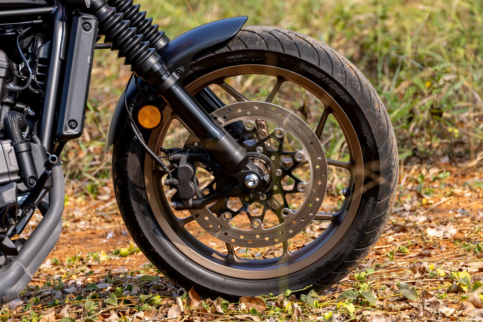 แกนโช้คหน้ามีขนาด 43 มม. ทำงานร่วมกับล้อขอบ 18 นิ้ว ที่รัดยางไซส์ 130/70 ซึ่งช่วยเสริมการรองรับแรงกระแทกด้านหน้าไปอีกขั้น และยังคงความสูงของตัวรถไม่ให้เตี้ยจนเกินไป