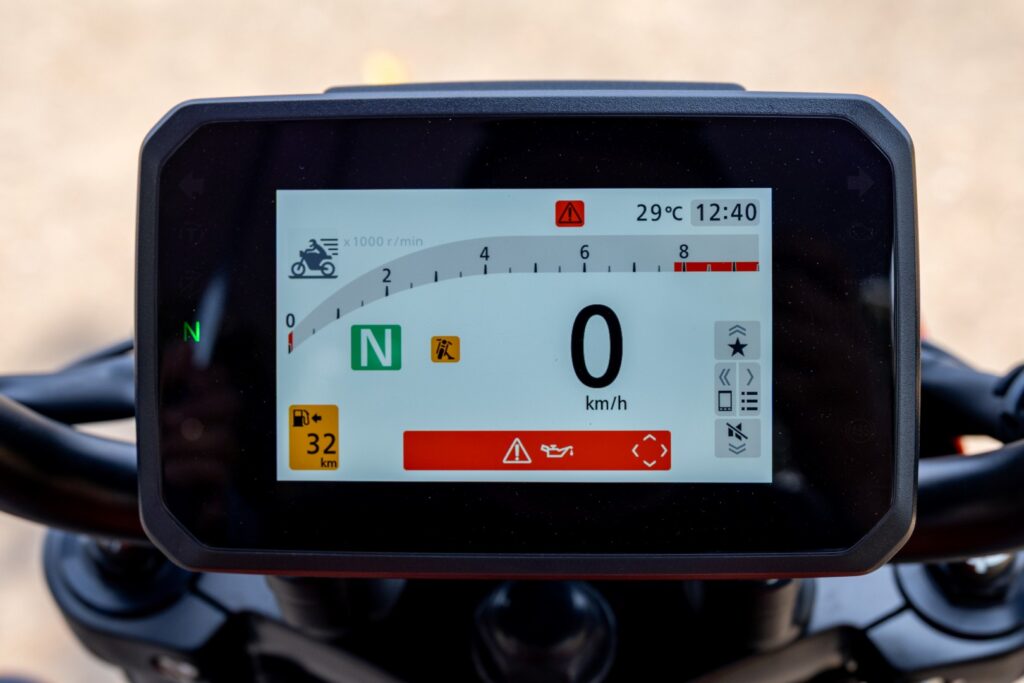 อย่างหนึ่งที่ผมชอบมากคือระบบล็อกความเร็วอัตโนมัติ (Cruise Control) ที่ช่วยลดความเมื่อยล้าในการขี่ทางไกลได้ดีมากซึ่งการปรับ-ล็อกคุมความเร็ว สามารถทำได้ง่าย ๆ ผ่านสวิตช์ตรงแฮนด์ฝั่งขวา ตั้งไว้ 100–120 ยิงยาวไปเพลิน ๆ อยากปิดก็แค่บีบเบรกหรือกดปุ่มอีกครั้ง ระบบก็จะตัดการทำงานทันที ติดไฟแดงนานเราก็สามารถเข้าเกียร์ว่างได้ด้วยการกดปุ่ม N คือมันเป็นอะไรที่สบายมาก