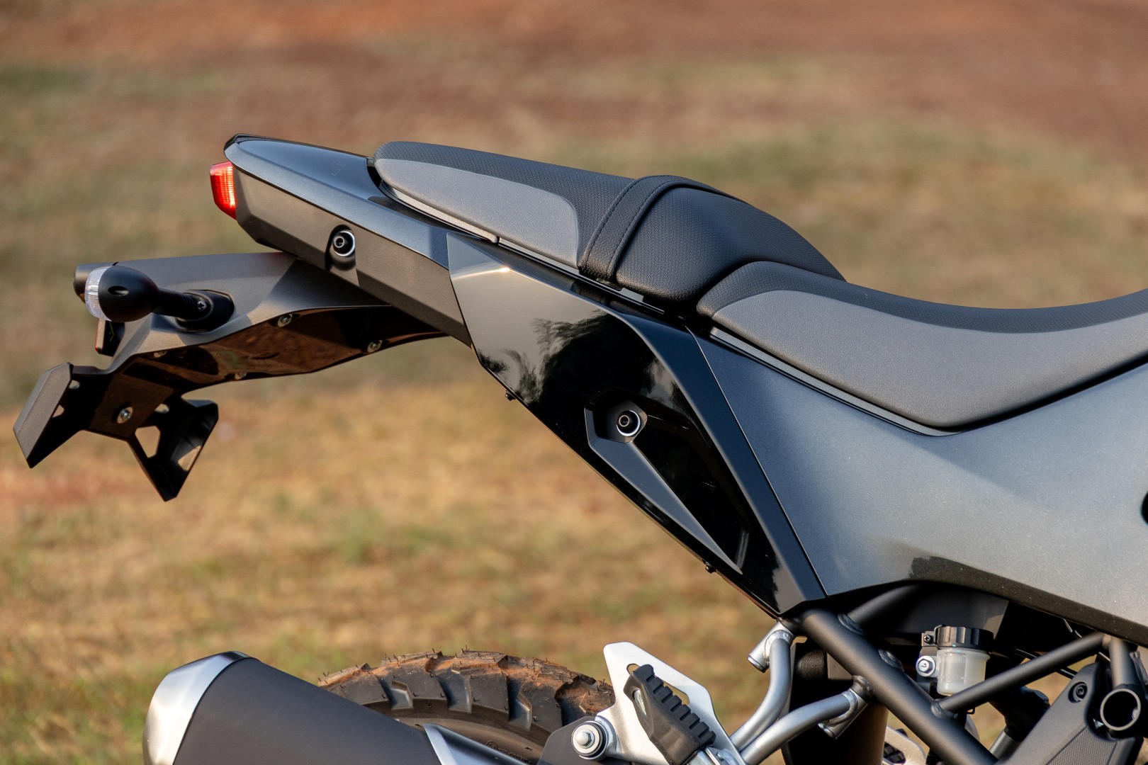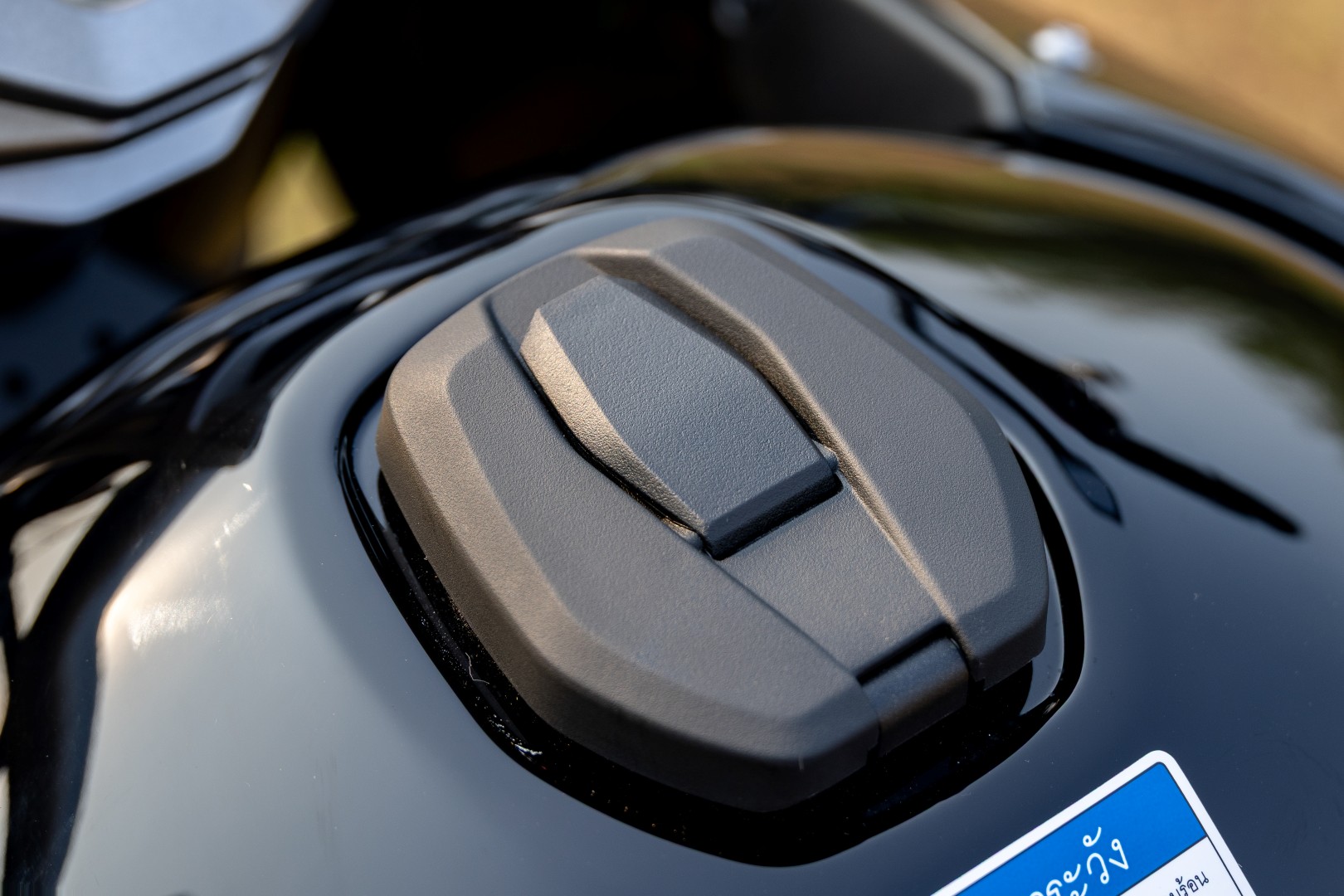 คันจริงอาจดูสูง แต่พอลองขึ้นคร่อมจริง กันสะเทือนหลังจะยุบตัวลงไปอีก ไม่ใช่เพราะความนิ่มของโช้คหลัง แต่เป็นความฉลาดในการออกแบบกระเดื่อง Uni-Trak ใหม่ของวิศวกร คือมันอาจไม่ได้ยุบลงไปเยอะเหมือนพวกระบบ Adaptive Ride Height หรือโช้คไฟฟ้า แต่เมื่อรวมกับเบาะความสูง 870 มม. ที่มีความคอด ทำให้คนสูง 175 ซม. อย่างผมสามารถเอาขาลงแตะพื้นได้สบายๆ (ถ้าใครตัวเล็กกว่านี้ก็สามารถซื้อเบาะ Low seat มาใส่แทนได้)