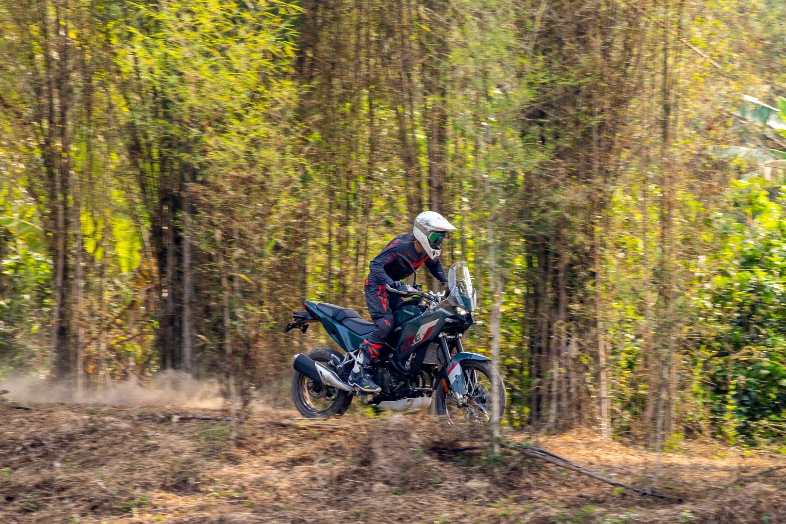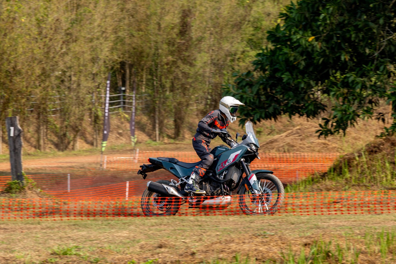 ถ้าลุยแบบโหด ๆ ลงเนินแรง ๆ รู้สึกว่าเบรกไหลยาวกว่าที่ตั้งใจ ก็สามารถกดปุ่มปิด ABS ได้ (ต้องจอดรถก่อน) แต่สำหรับทางฝุ่นทั่วไป การเปิด ABS ไว้ทำให้เราไม่ต้องใช้เบรกหลังช่วย ความเร็วและรอบก็ไม่ตกมาก พอเอียงรถเข้ามุมให้ได้องศา พร้อมถ่ายน้ำหนักตัว แล้วกดคันเร่งส่ง ท้ายรถก็พาวเวอร์สไลด์สวย ๆ ในทันที