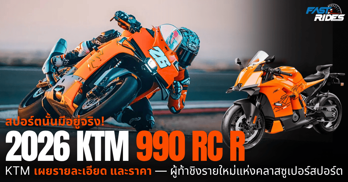 หลังจากห่างหายจากตลาดรถสปอร์ตฟูลแฟริ่งมานานเกือบหนึ่งทศวรรษ ในที่สุด KTM ก็ประกาศคืนสังเวียนอีกครั้งกับ 990 RC R รุ่นปี 2026 รถซูเปอร์สปอร์ตสัญชาติออสเตรียที่ถูกพัฒนาให้เป็น “เรซเรพลิกาที่ส่งตรงจากสนามสู่ถนน” อย่างแท้จริง พร้อมเครื่องยนต์ตระกูล LC8c ที่แฟนพันธุ์แท้รู้จักดี