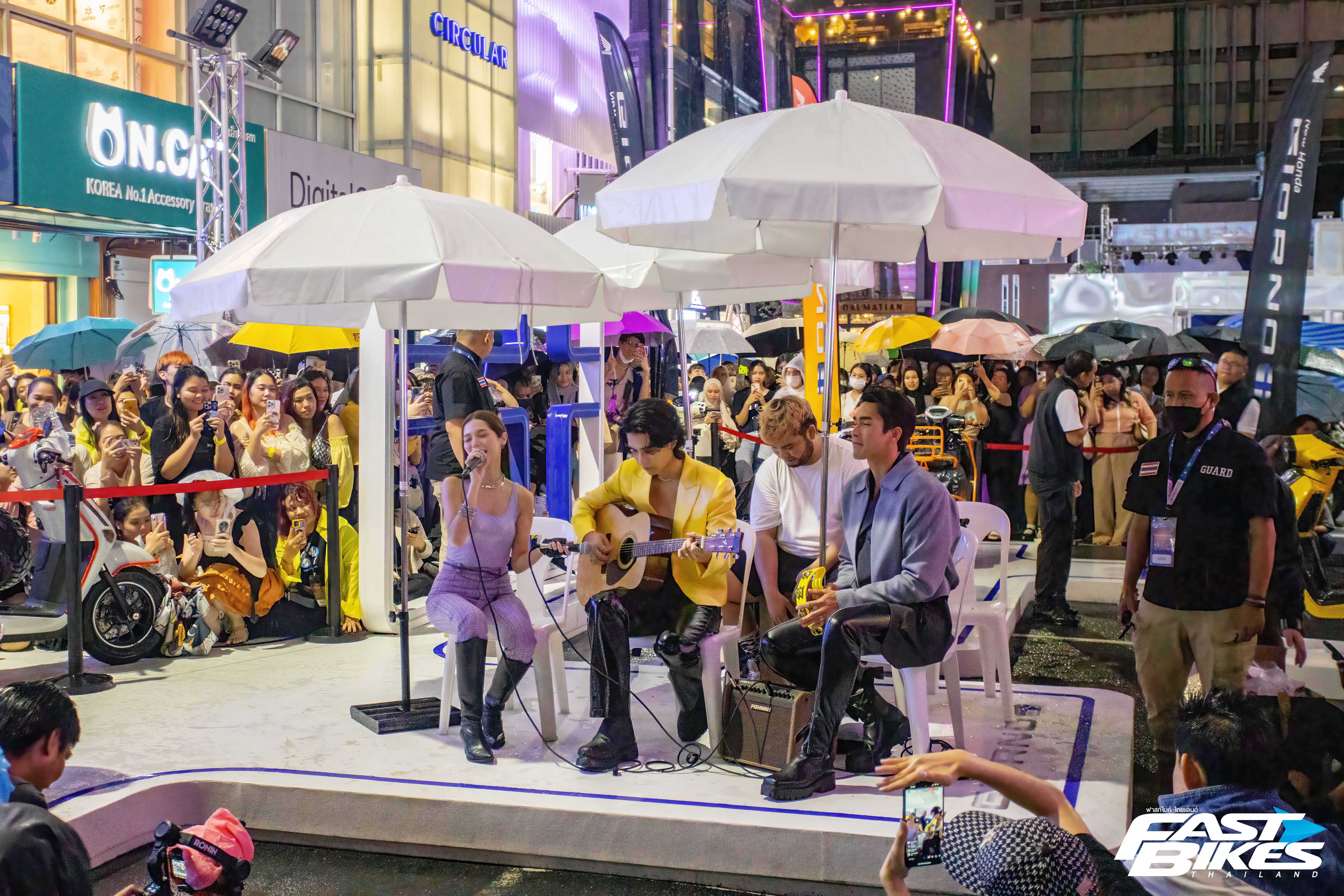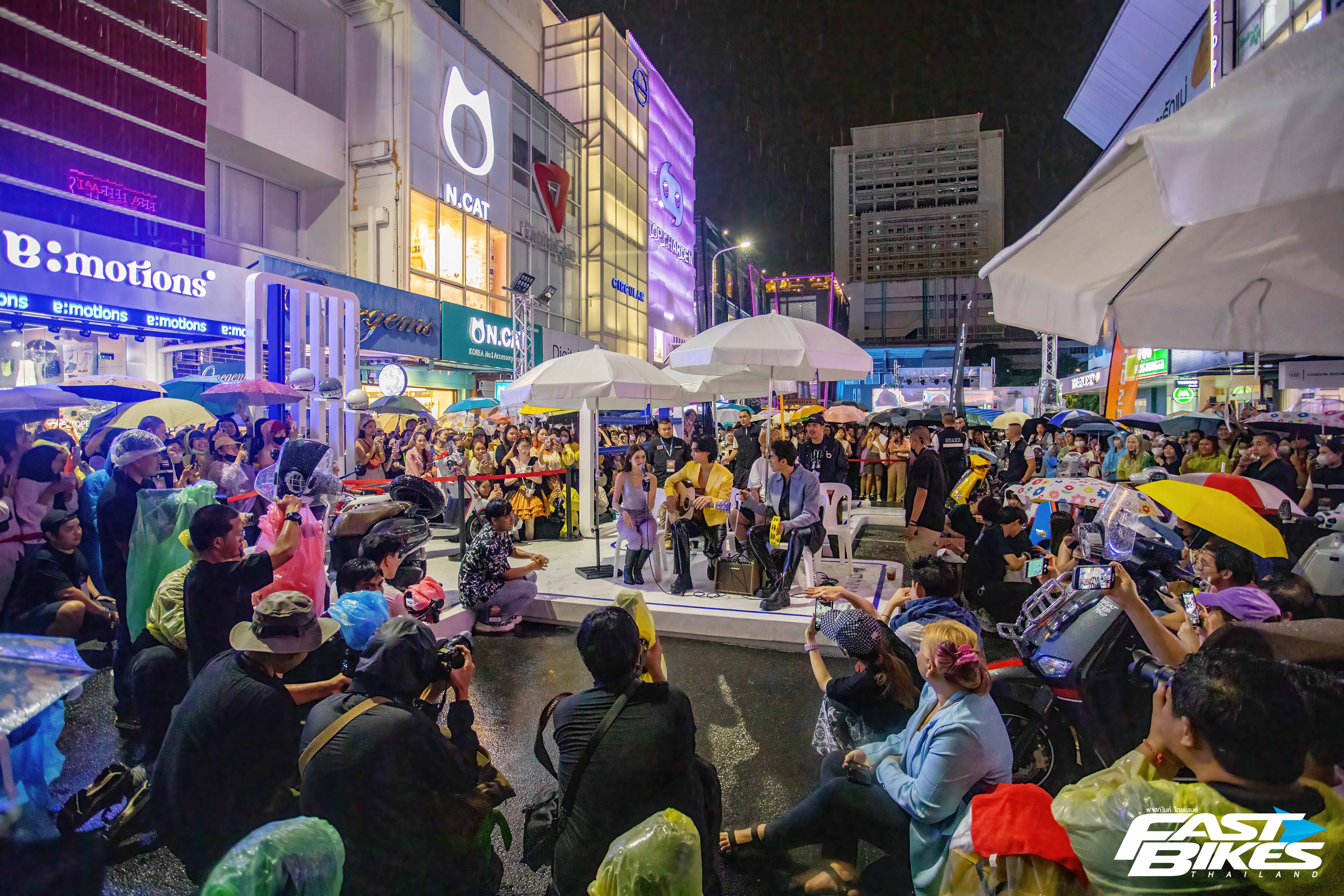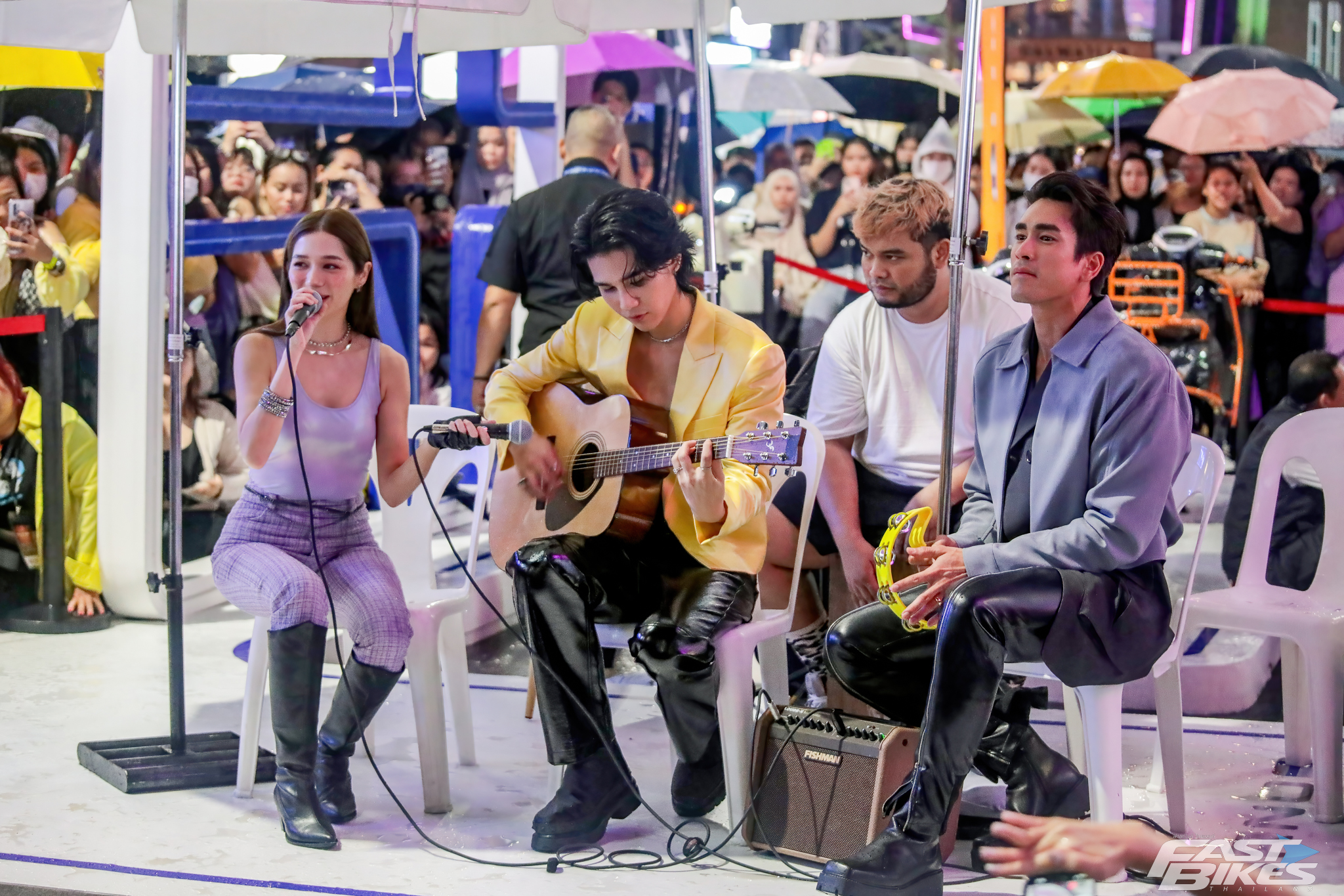 นอกจากนี้เหล่าสาวกรถโมเดิร์นคลาสสิคและ Giorno+ พร้อมบรรดาแฟนคลับ ยังได้สัมผัสใกล้ชิดกับพรีเซนเตอร์ทั้ง 3 นำโดย “ณเดชน์ คูกิมิยะ” , “วี-วิโอเลต วอเทียร์” และ“เจฟ-วรกมล ซาเตอร์ ซึ่งแม้จะมีสายฝนโปรยปรายลงมาก็ไม่ได้ถอยยังคงเปิดมินิคอนเสิร์ตอะคูสติกกลางสายฝนแบบน่ารักๆ แสดงความสามารถในการเอนเตอร์เทนอย่างน่าประทับใจ