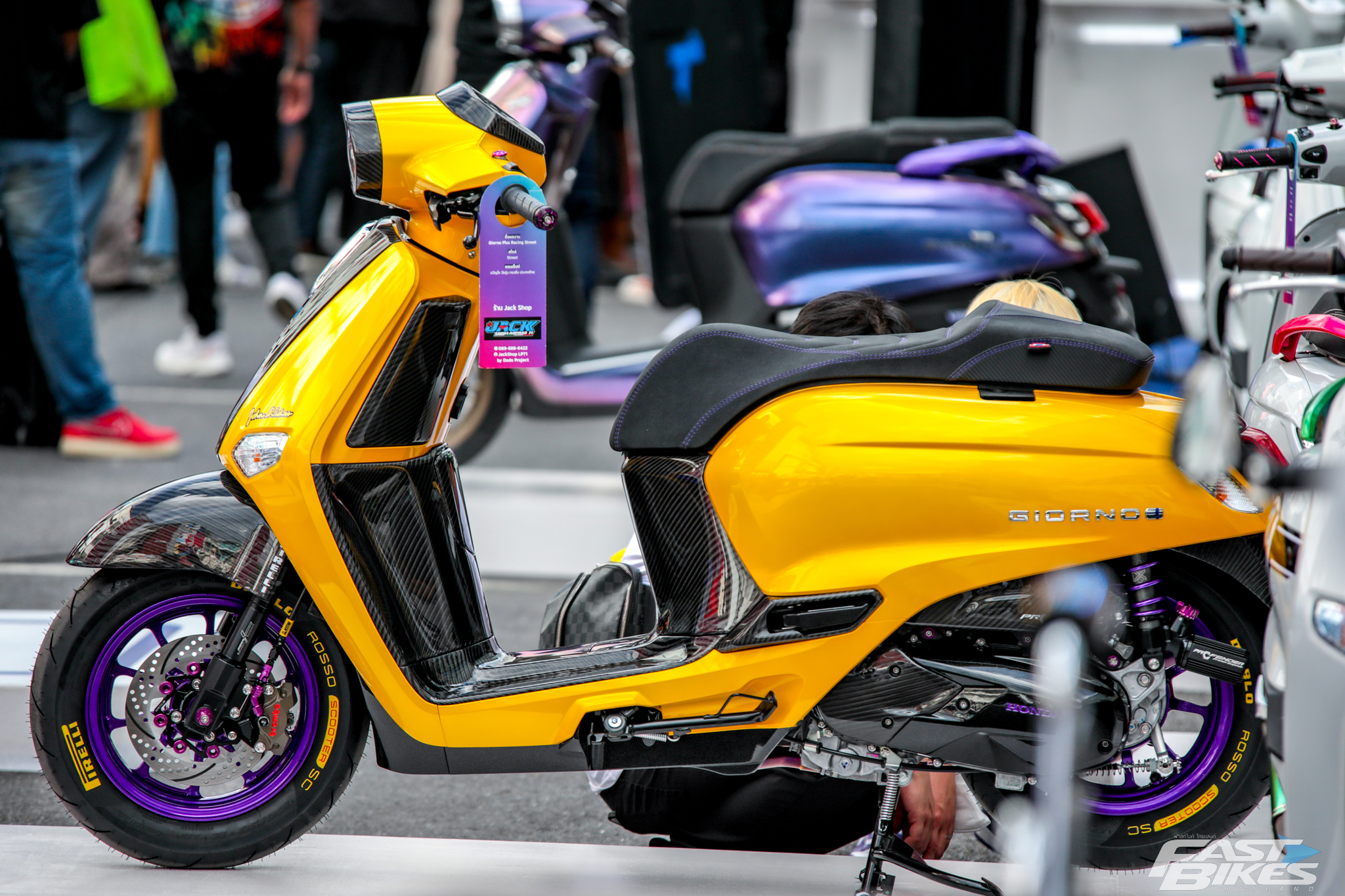 ส่วนของสำนัก Jack Shop นำเสนอความสตรีทในยุคปัจจุบันให้กับรถจักรยานยนต์ New Honda Giorno+ โดยใช้เทคนิคการทำสีน้ำเงินแบบ High Gross อีกทั้งยังมีการโหลดโช้กหน้า-หลัง ลงมา ซึ่งเป็นสไตล์ที่กำลังได้รับความสนใจเป็นอย่างมากในกลุ่มคนที่ชื่นชอบการแต่งรถแนวสตรีท