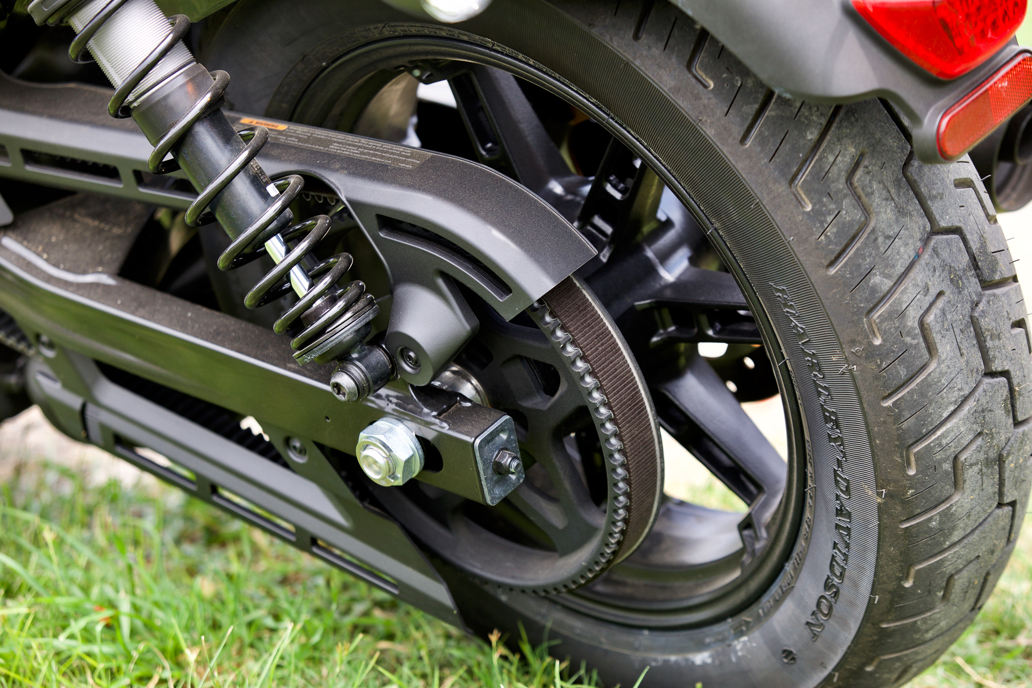 ถ้าสังเกตให้ดีจะเห็นว่าด้านหลัง โดยเฉพาะโช้คนั้นค่อนข้างกว้าง เพราะใช้โช้คคู่สปริงใหญ่ กระบอกใหญ่ มีหูจับยึดโช้คที่เรียกว่า Collar ยื่นออกมากว้างเท่ากับความกว้างของสวิงอาร์มหลัง ถ้าติดเบาะท้ายมาด้วย คนซ้อนคงต้องนั่งกางขาไปตลอดทาง นั่งไม่สบายอย่างแน่นอน ด้านระบบเบรก ABS ที่ให้มาทำงานได้อย่างแม่นยำ เบรกหน้าที่บางคนสงสัยว่าให้ดิสก์เดี่ยวมาจะพอไหม บอกเลยว่าพอเหลือ ๆ ในบางจังหวะยังรู้สึกว่ามันปึกเกินไปเสียด้วยซ้ำ โดยเฉพาะตอนเลี้ยวมุมแคบในความเร็วต่ำ ถ้าลองแตะจะพบว่าเบรกหน้าค่อนข้างอยู่ดีเกินไปนิด อาจทำให้เสียอาการเล็ก ๆ ได้เลยถ้าเผลอ
