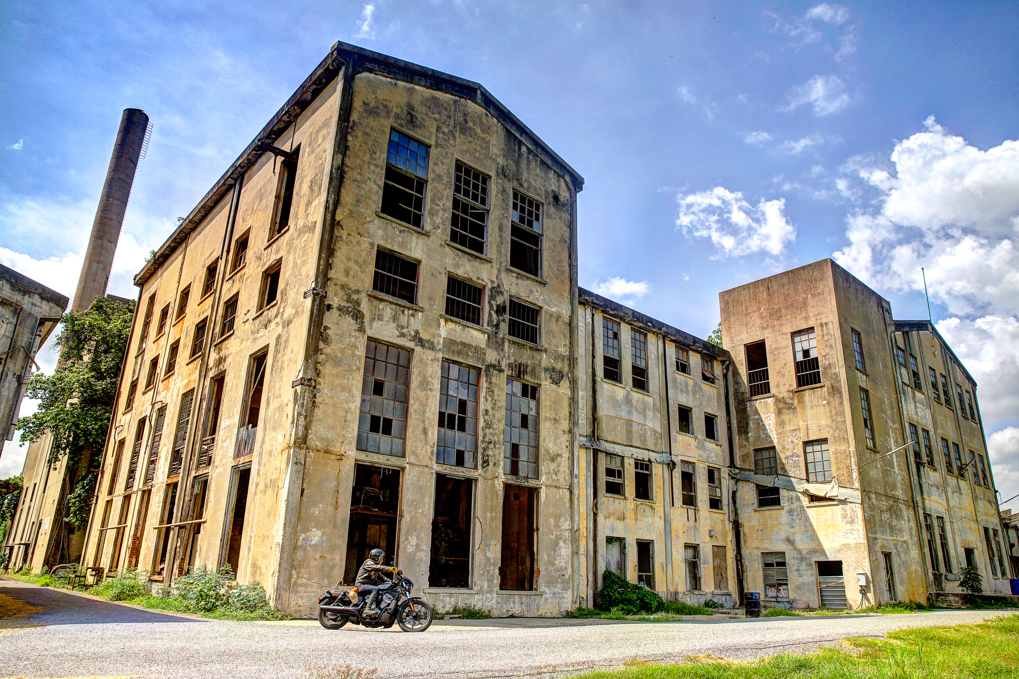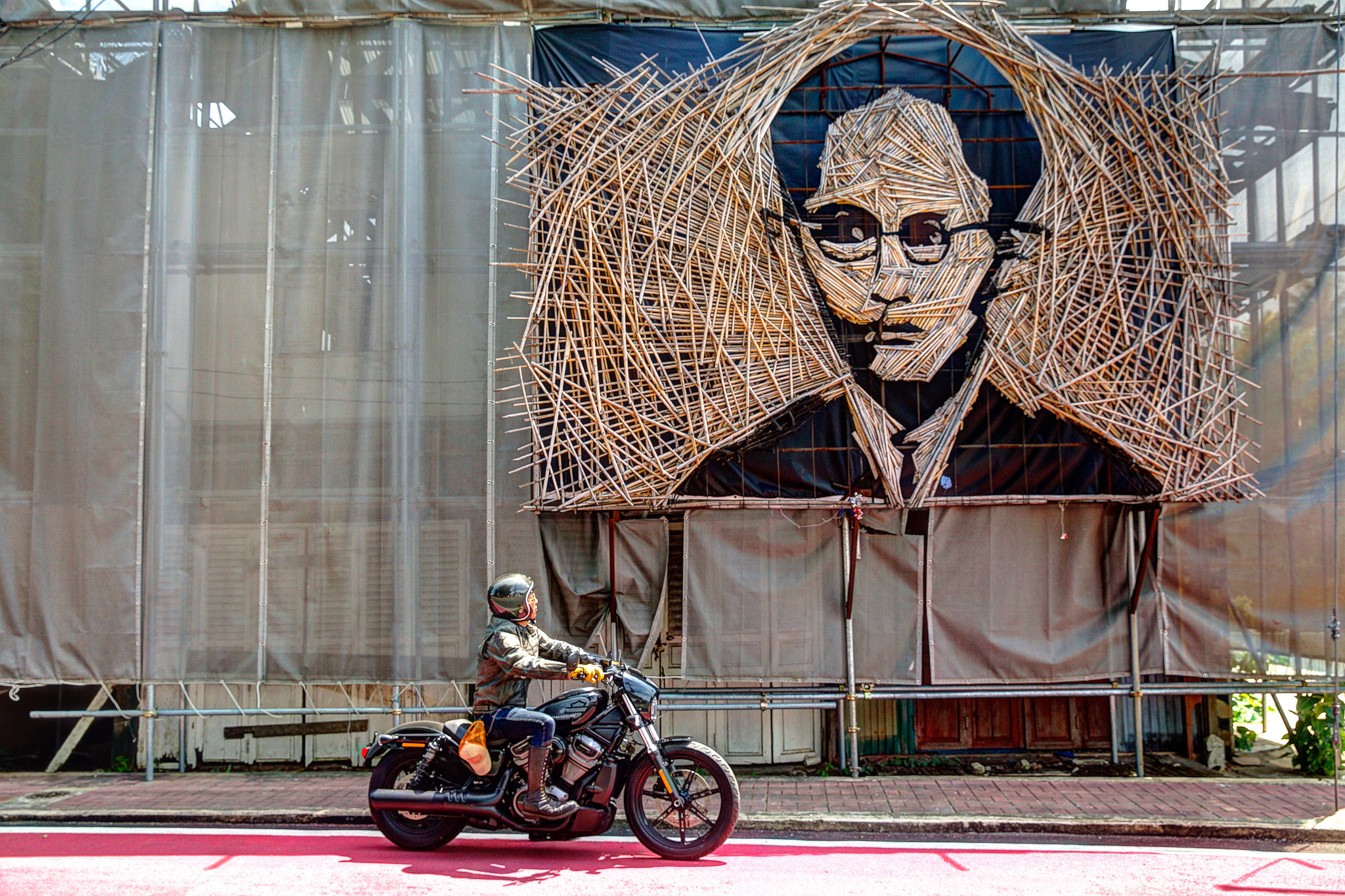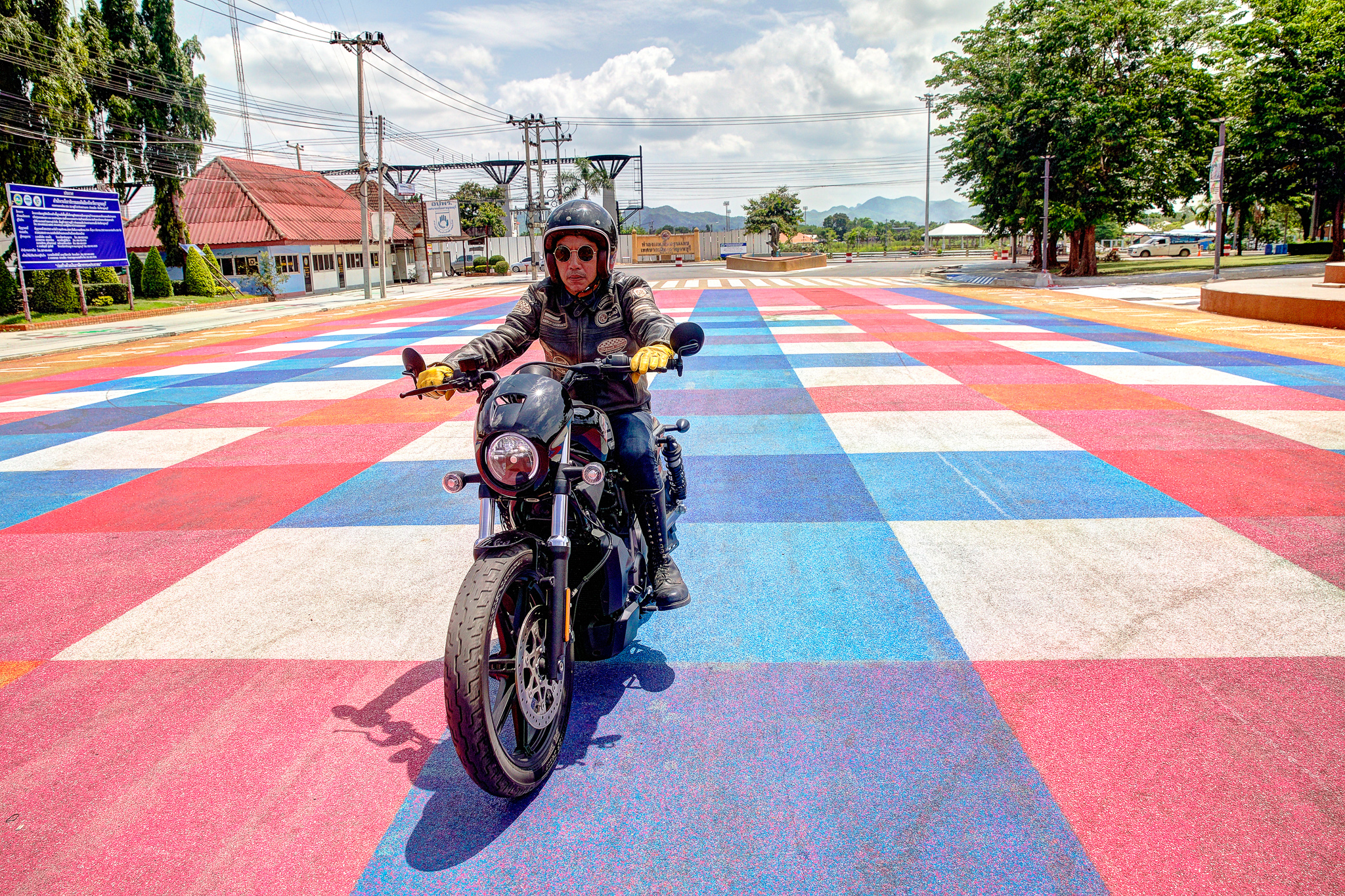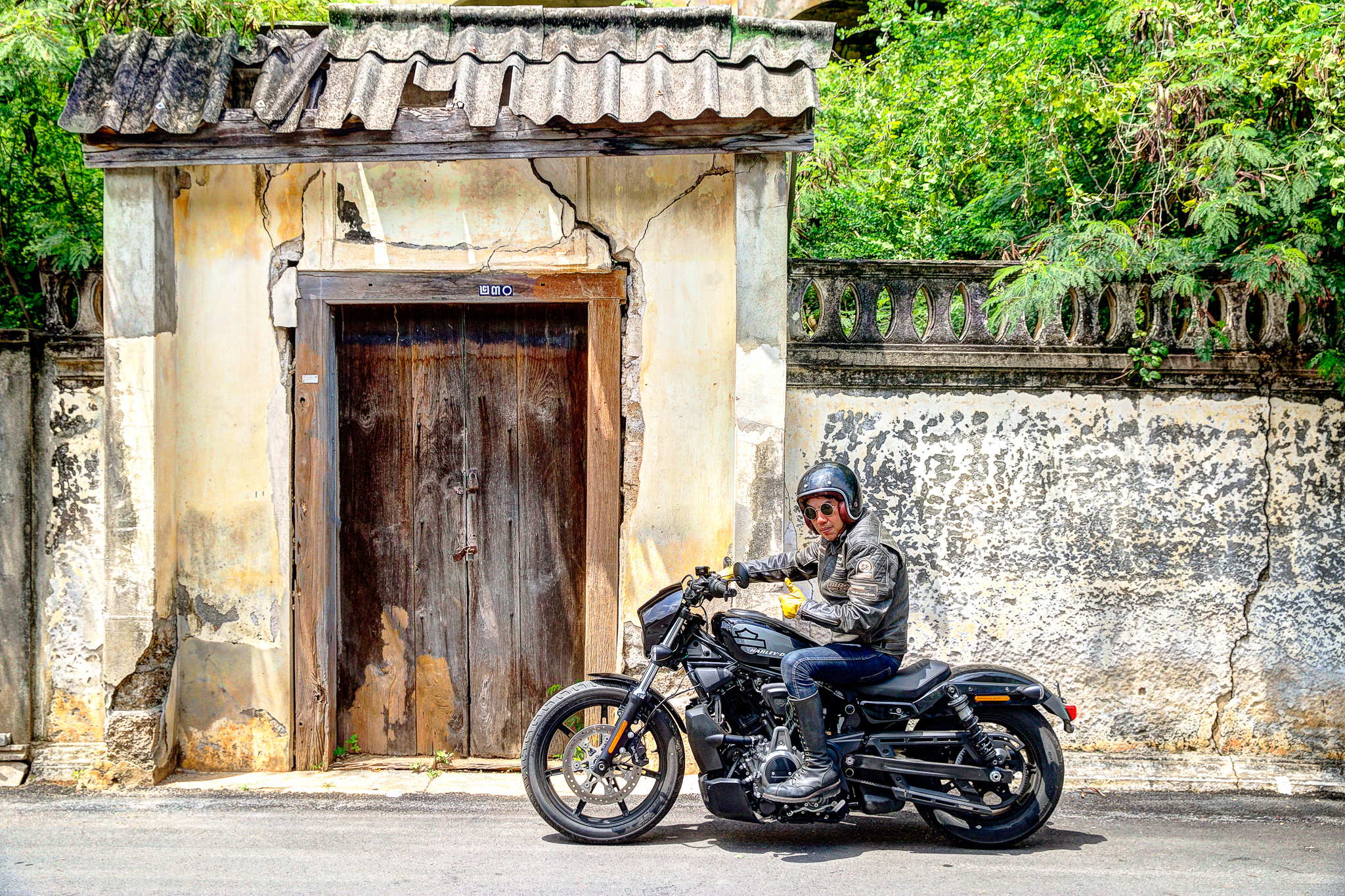 หลังออกจากโรงงานกระดาษมา และขี่ไปเก็บภาพสวย ๆ ตามทางเป็นที่เรียบร้อย จุดหมายสุดท้ายของเราคือ ตลาดเชลยศึก ริมแม่น้ำแคว ซึ่งผมคุ้นเคยเป็นอย่างดี ในลานกว้างร้างผู้คนที่มีเก้าอี้และโต๊ะวางไว้ของร้านเครื่องดื่มที่น่าจะเตรียมเปิดในช่วงเย็น เรานึกอยากลองความสามารถในการเลี้ยวมุมแคบ ๆ ของ Nightster™ ดูให้รู้ชัดว่ามันขี่ง่ายจริงไหม เบาขนาดนี้จะพลิ้วสักแค่ไหน