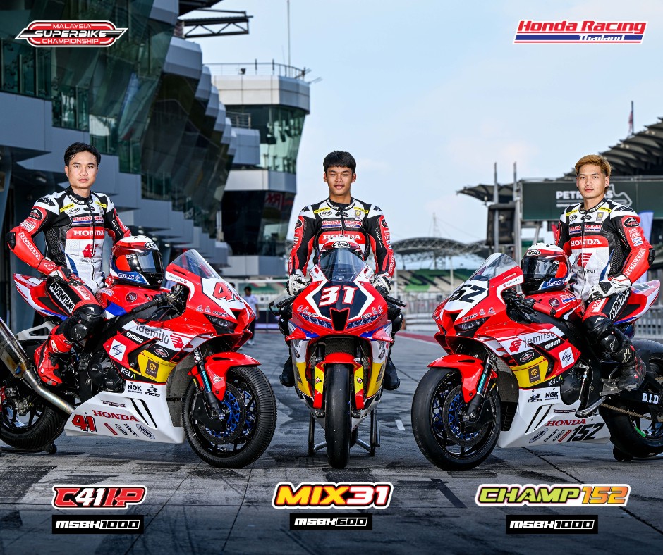 สำหรับในสนามแรกนี้ Honda Racing Thailand Team นำโดย รุ่นใหญ่อย่าง MSBK 1000 ด้วยรถแข่ง Honda CBR1000RR-R “ชิพ” นครินทร์ หมายเลข 41 และ “แชมป์” ภาสวิชญ์ หมายเลข 152 ส่วน “มิกซ์” ธนัช นักบิดดาวรุ่งเลือดใหม่จะลงแข่งขันด้วยรถแข่ง Honda CBR600RR ในรุ่น MSBK 600 ด้วยหมายเลข 31 โดยทั้ง 3 นักบิดไทย พร้อมเต็มร้อยก่อนลุยสนามแรก ที่ เซปัง อินเตอร์เนชั่นแนล เซอร์กิต ประเทศมาเลเซีย ระหว่างวันที่ 10-12 พฤษภาคม